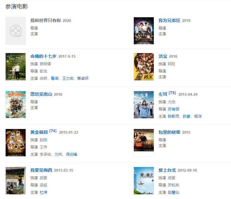 2014年8月在蘇有朋導(dǎo)演電影處女作《左耳》中飾演“尤他”。