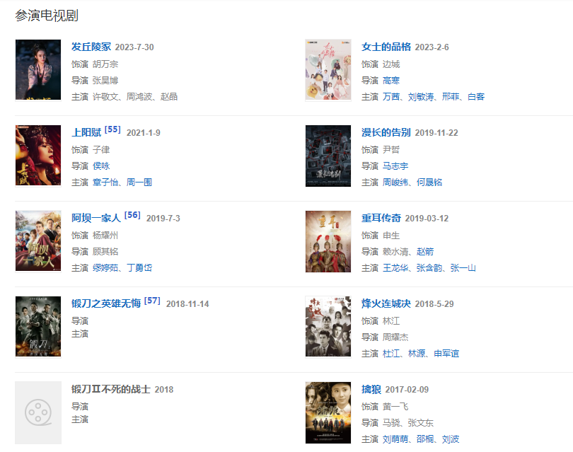 代表作品:女媧傳說(shuō)之靈珠、擒狼、鍛刀、重耳傳、情定三生、愛(ài)就是那樣簡(jiǎn)單、喜瑪拉雅王子、戰(zhàn)北平