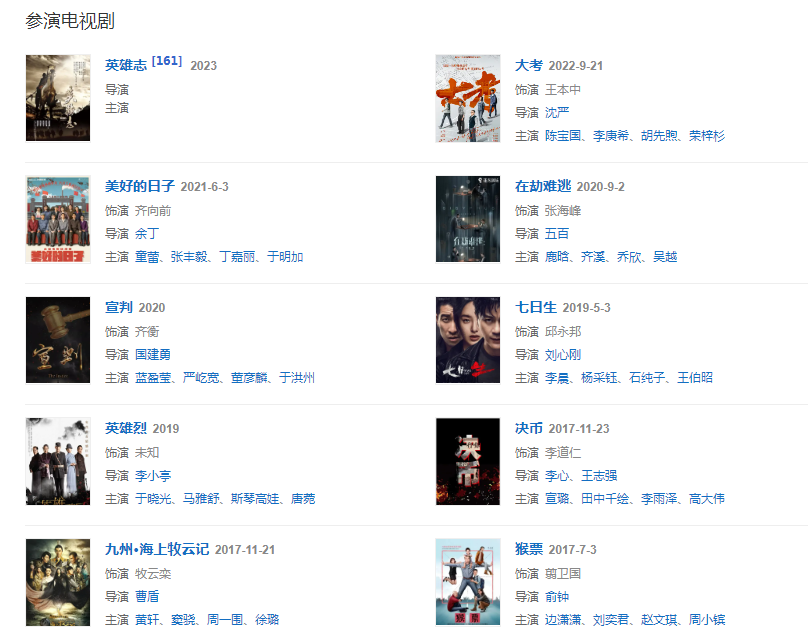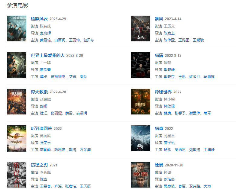 代表作品鋼的琴、異鎮(zhèn)、湄公河大案、解救吾先生、三七撞上二十一、黎明決戰(zhàn)、繡春刀