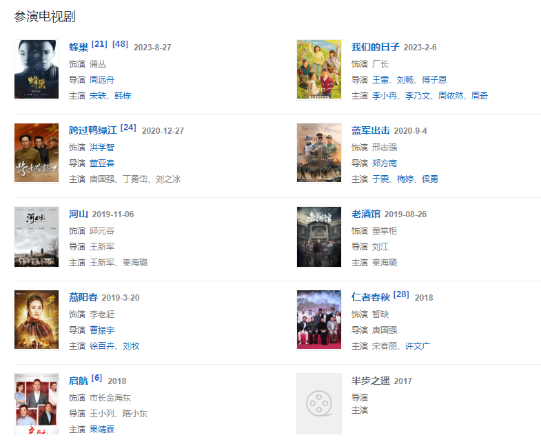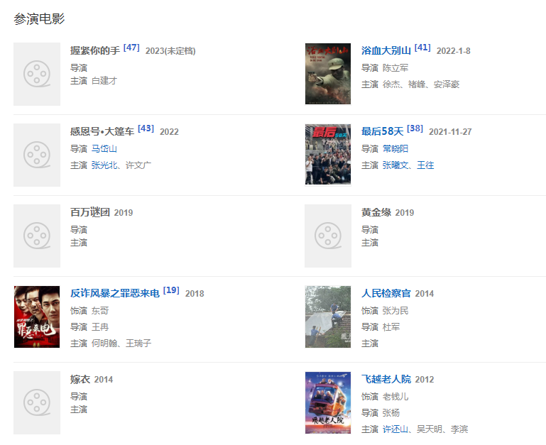 202218日,與徐杰、褚峰、安澤豪等人聯(lián)合主演的公安題材紅色主旋律電影《浴血大別山》播出。
