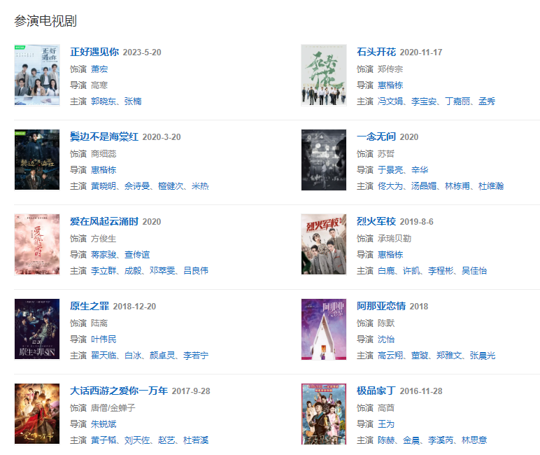代表作品:麻雀、夏洛特?zé)?、他來了,請閉眼、龍門鏢局、鬢邊不是海棠紅、揚(yáng)名立萬
