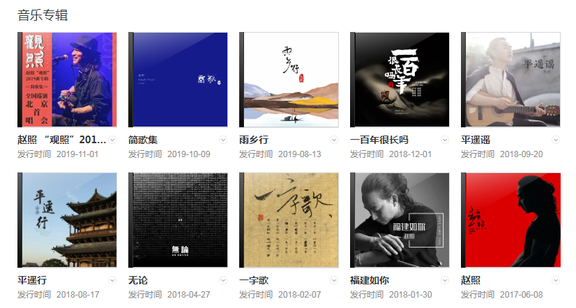 2017年6月,發(fā)行同名專輯《趙照》,包含了《夏日的最后一天》《一定》《請你輕一點折磨我》《愛情火槍》《唱一首悲傷的歌 就當(dāng)我為你送行了》歌曲 。