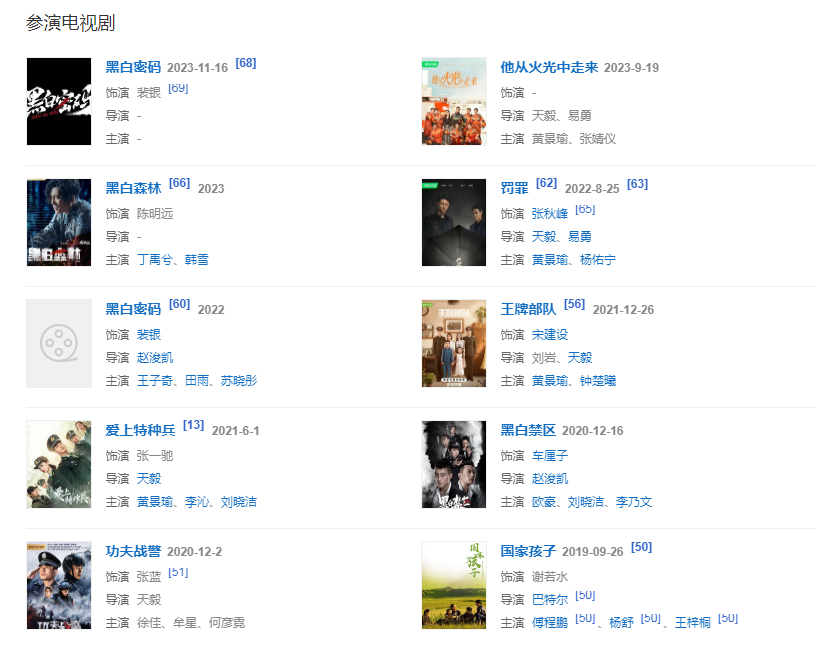代表作品:我是特種兵、我是特種兵之利刃出鞘、特種兵之火鳳凰、云水怒、DA師、家變、惲代英、追日