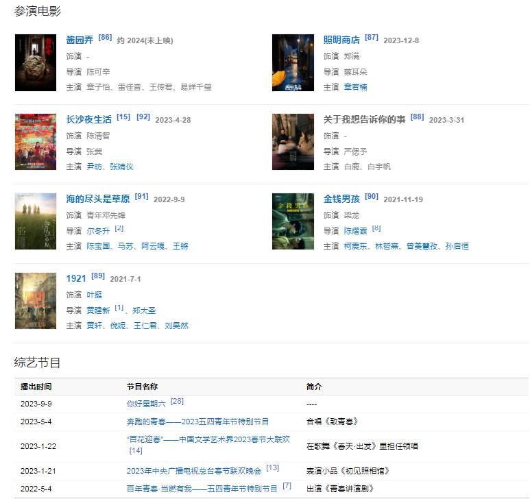 2022年,入選2022電影頻道“星辰大海”青年演員優(yōu)選計劃;11月,獲得2022微博視界大會微光榮耀年度新銳演員獎。