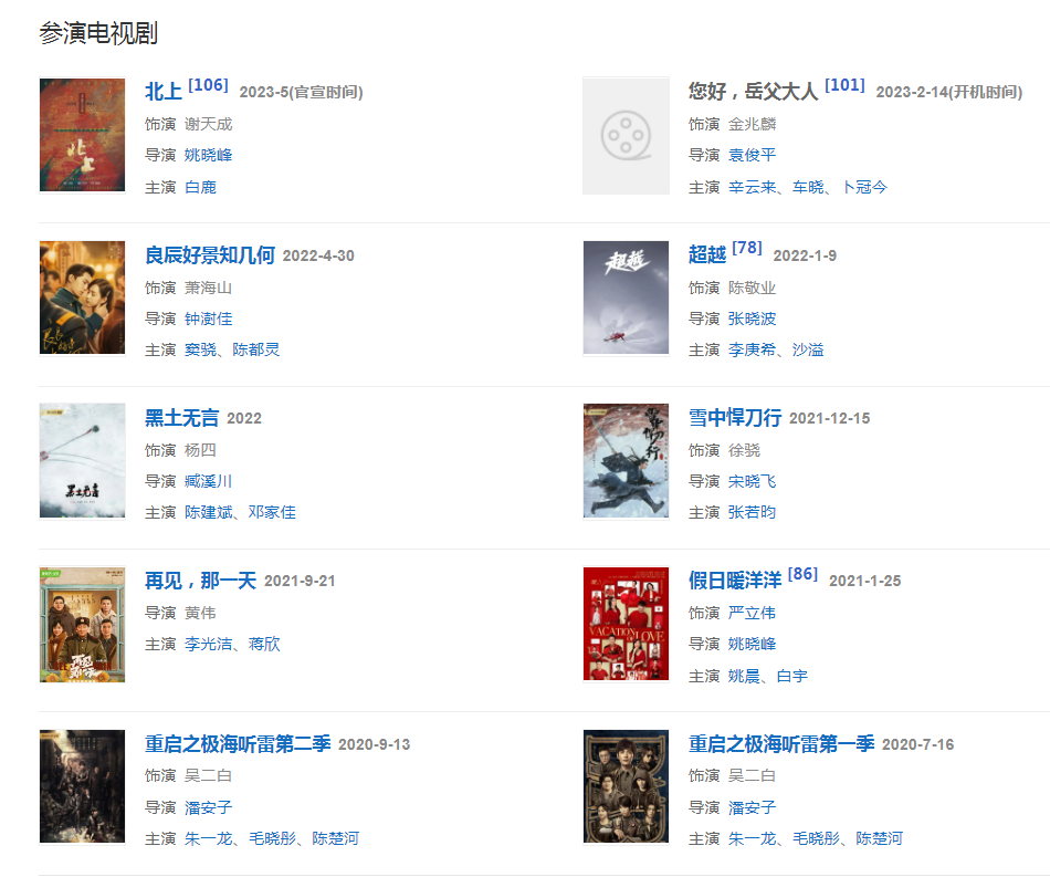 5月,與陳建斌、鄧家佳領(lǐng)銜主演社會(huì)懸疑刑偵劇《黑土無(wú)言》,在劇中飾演服刑人員楊四。