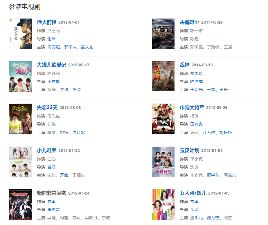 代表作品:北京愛情故事、唐人街探案系列、法官媽媽、春風沉醉的夜晚、士兵突擊、戰(zhàn)神、遠大前程
