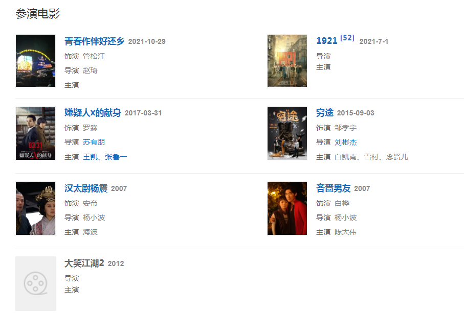 代表作品:《隋唐英雄4》《步步驚心》《犀利仁師》《活佛濟(jì)公2》《新白發(fā)魔女傳》、蜀山戰(zhàn)紀(jì)之劍俠傳奇