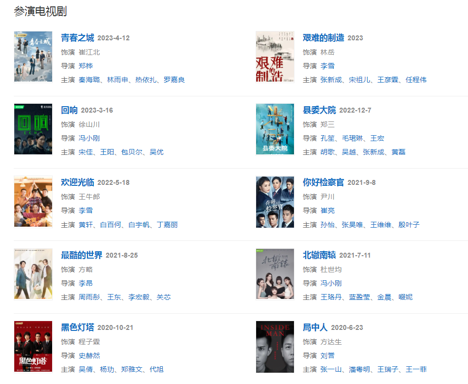 2009年與陸毅、王珞丹主演趙寶剛導(dǎo)演的電視劇《我的青春誰(shuí)做主》。