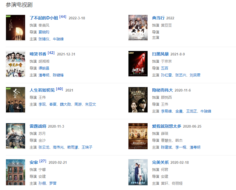 202189日,參演的電視劇《掃黑風(fēng)暴》播出,在劇中飾演于京京;1231日,參演的電視劇《儒林外史之啼笑書香》播出。