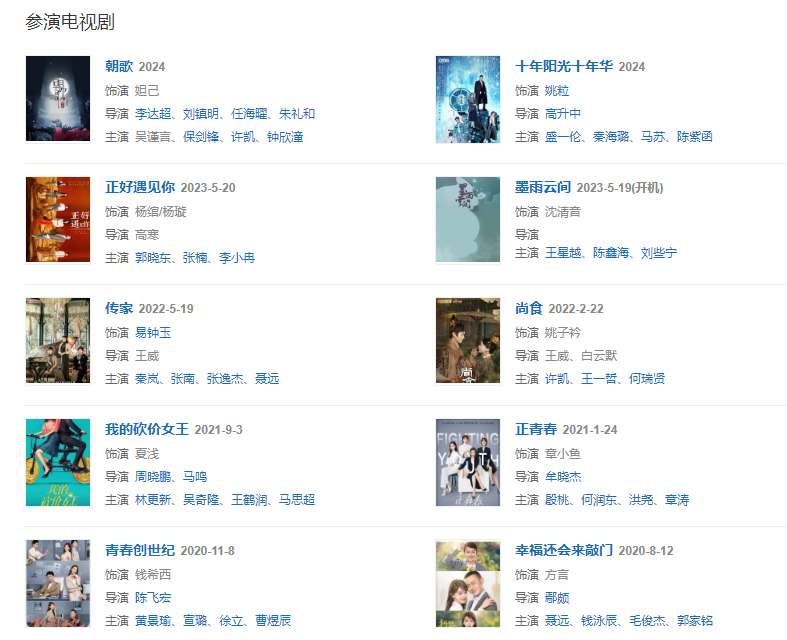 代表作品:延禧攻略、外灘鐘聲、皓鑭傳、青春創(chuàng)世紀、正青春、尚食、傳家