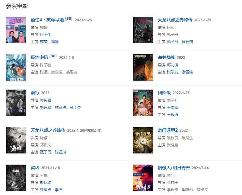 2016年參演電視劇《青丘狐傳說》、《江城三月》  和電影《發(fā)條城市》、《幸運(yùn)是我》。