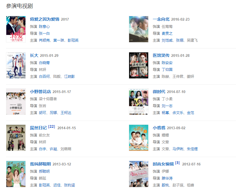 代表作品:小爸爸、失戀33天、時(shí)尚女編輯、我叫郝聰明、醫(yī)館笑傳、長(zhǎng)大