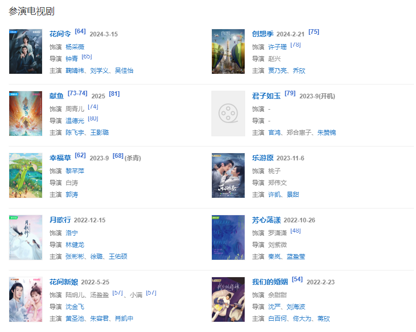 2024年2月21日,參演的電視劇《創(chuàng)想季》播出;2月24日,參加的節(jié)目《無(wú)限超越班第二季》播出。3月15日,友情出演的電視劇《花間令》播出。