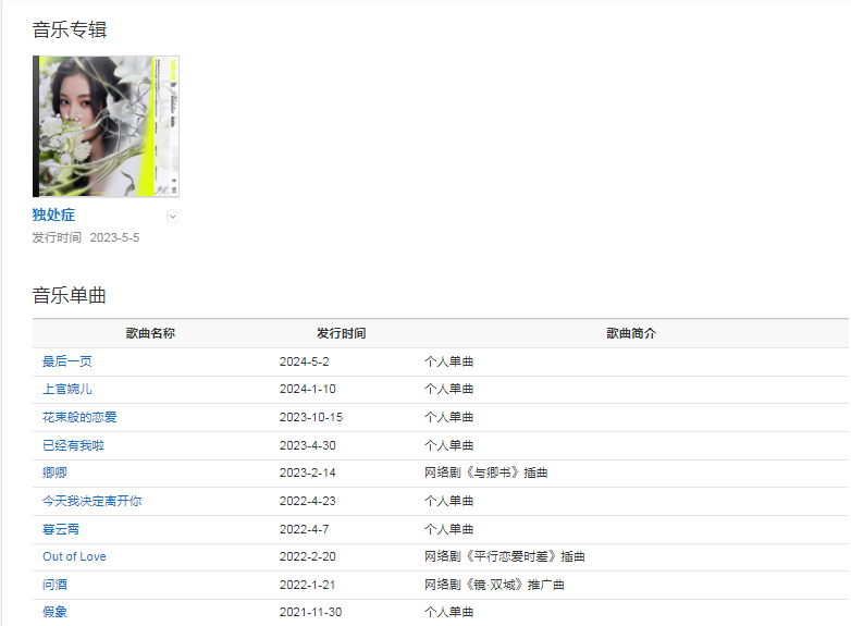 2023年5月5日,姚曉棠推出個人首張EP《獨處癥》,其中收錄了包括《我想你了》《她的樹》等在內的4首歌曲;5月6日,參加的音樂文化交流節(jié)目《聲生不息·寶島季》在湖南衛(wèi)視播出;10月15日,推出個人單曲《花束般的戀愛》。