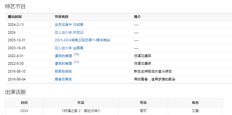 2024年2月3日,參加《2024湖南衛(wèi)視芒果TV春節(jié)聯(lián)歡晚會》,表演《接龍迎春拜新年》;2月13日,參加綜藝節(jié)目《全員加速中·對戰(zhàn)季》播出;5月,參加《花兒與少年·好友記》播出。5月25日,主演的古裝輕喜劇《南城宴》播出,在劇中飾演從事于萬事閣的俠女拂曉 。8月7日,主演的話劇《玩偶之家 2:娜拉歸來》北京站第一場演出結(jié)束。8月7日-11日,主演的話劇《玩偶之家 2:娜拉歸來》在北京天橋藝術(shù)中心演出五場。8月6日,主演的古裝仙俠劇《衡門有狐-臨江仙》殺青。