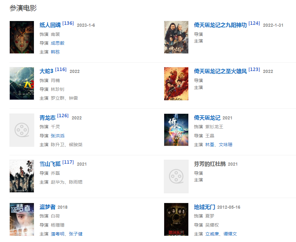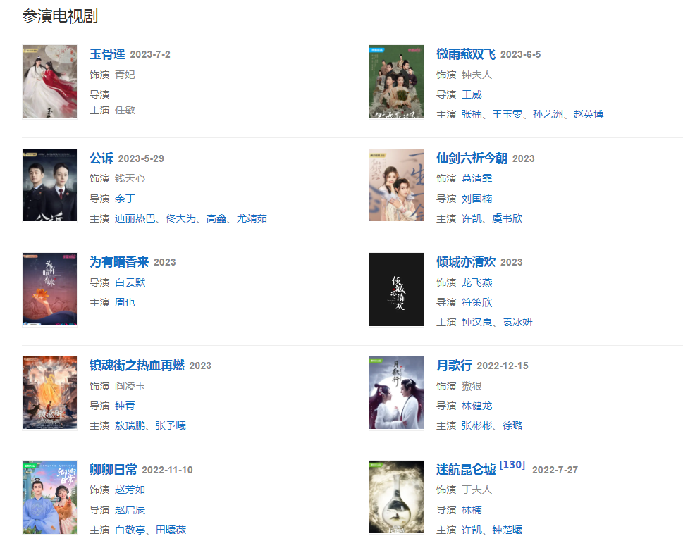 2006年,隨著《白蛇傳》、《神雕俠侶》等古裝劇的播出被觀眾們所熟知。