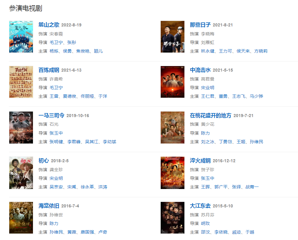 代表作品:初心、海棠依舊、江姐、八月一日、傘頭和他的女人
