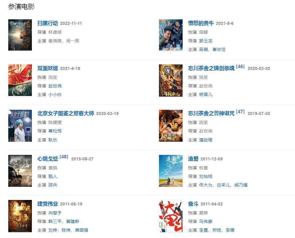2008年,憑借劇情片《立春》提名第27屆金雞獎(jiǎng)最佳女配角獎(jiǎng);同年,她還主演古裝武俠劇《八大豪俠》。