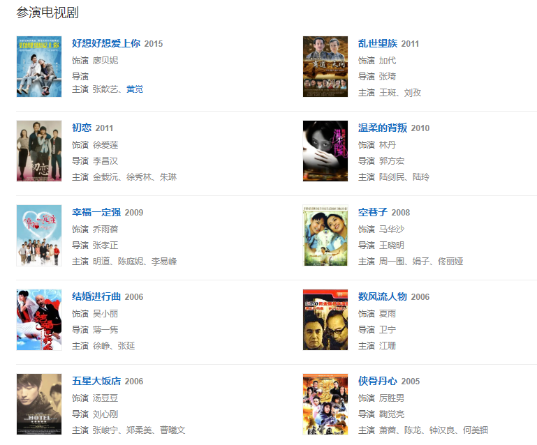 2006年,參演電視劇《數(shù)風流人物》,飾演女一號夏雨。同年與房祖名、陳柏霖主演電影《PK.COM.CN》,飾演女主角吳羽飛。