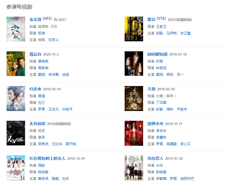 代表作品:仙劍奇?zhèn)b傳三、何以笙簫默、錦繡未央、夏家三千金、金玉良緣、X女特工、亂世佳人