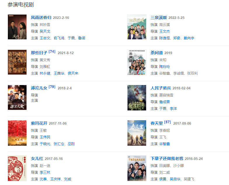 2022525日,主演的電視劇《三泉溪暖》播出,在劇中飾演女黨支部書記高云溪。