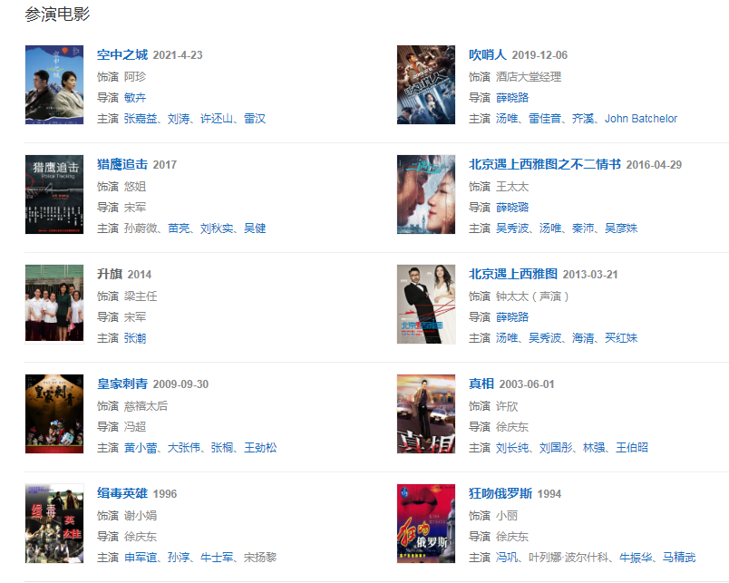 1997年,參演電影《緝毒英雄》,獲得大眾電影百花獎(jiǎng)最佳女配角提名。