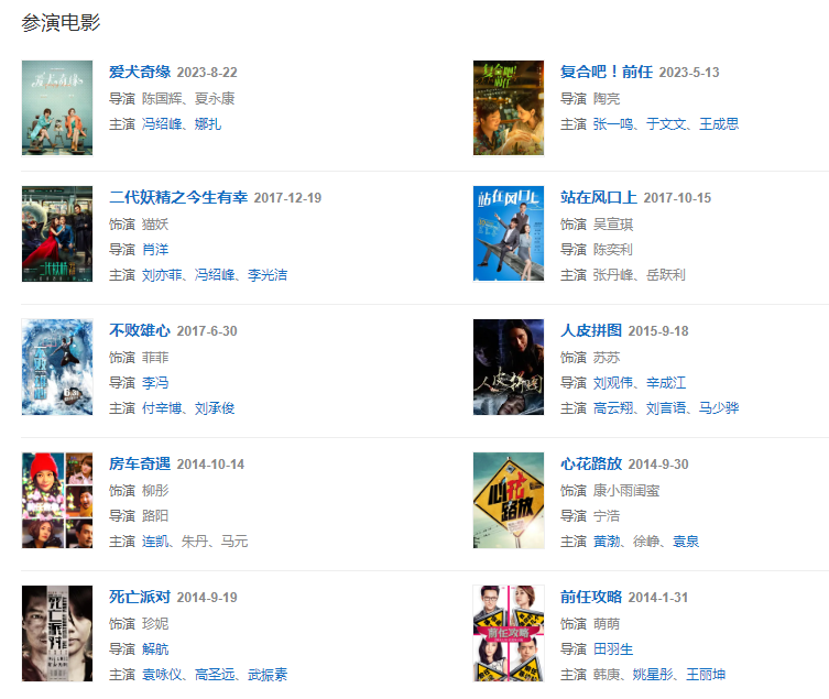 代表作品:問君能有幾多愁、冰與火的青春、雙城計中計、非緣勿擾、死亡派對、故夢
