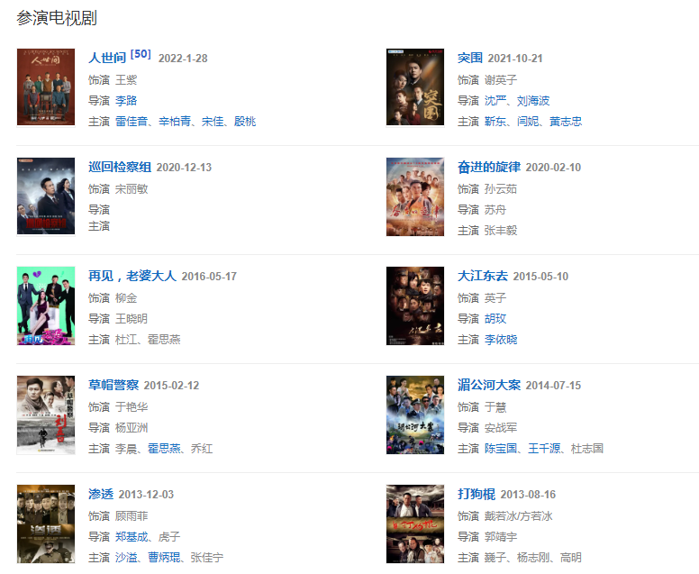2020年,參演的法治檢察題材電視劇《巡回檢察組》在湖南衛(wèi)視金鷹劇場、優(yōu)酷雙平臺正式開播。