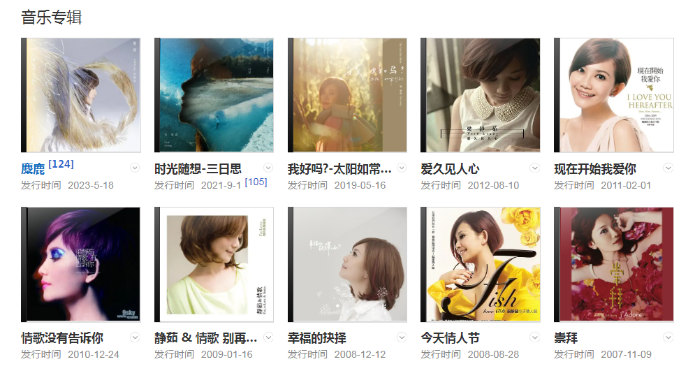2012年推出第12張個(gè)人音樂(lè)專輯《愛久見人心》,并憑借該專輯獲得第11屆CCTV-MTV音樂(lè)盛典港澳臺(tái)地區(qū)年度最受歡迎女歌手獎(jiǎng);其前12張個(gè)人專輯在全亞洲的唱片總銷量則超過(guò)了1800萬(wàn)張。