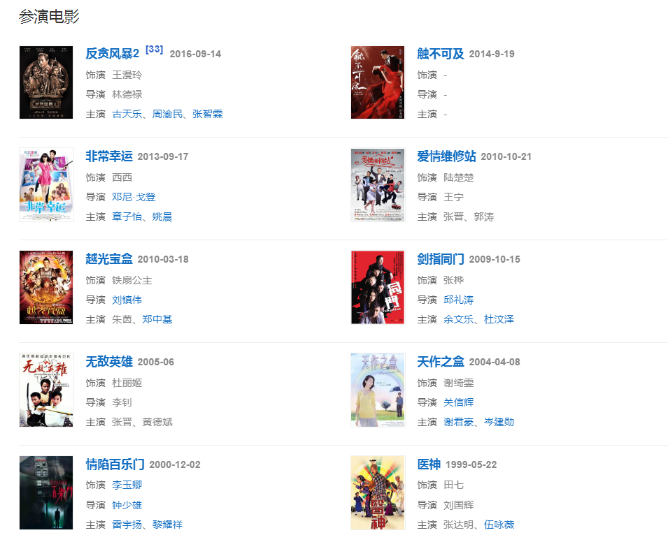 1994年出演古裝電影《九品芝麻官之白面包青天》獲得關(guān)注,