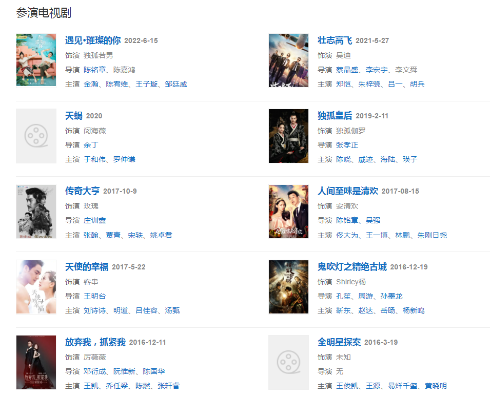 代表作品:王子變青蛙、命中注定我愛你、笑傲江湖、勝女的代價(jià)、鬼吹燈之精絕古城、佳期如夢、偏偏喜歡你