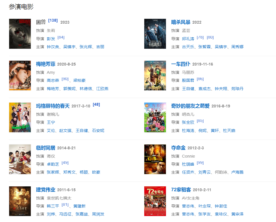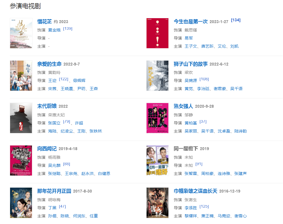 代表作品:萬凰之王、怒火街頭、我的野蠻奶奶、肥田囍事、那年花開月正圓、領(lǐng)養(yǎng)、我的繼父是偶像、稀世情緣 (2004)