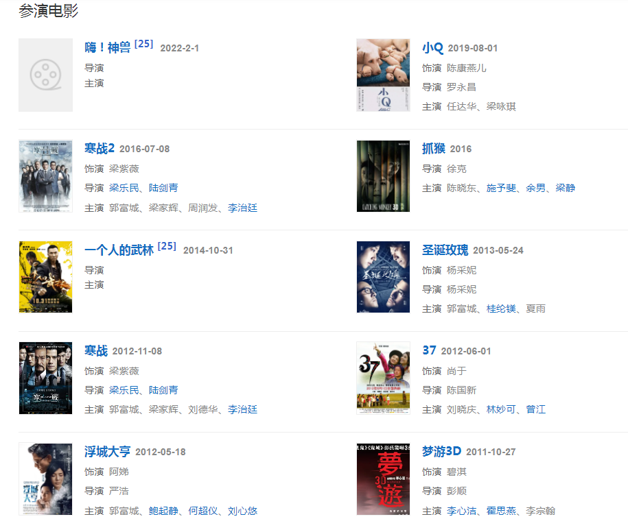 代表作品:94獨臂刀之情、梁祝、自梳、七劍、寒戰(zhàn)、圣誕玫瑰
