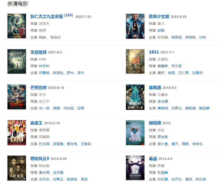 2022525日,參演的軟科幻動作電影《致命少女姬》登陸騰訊視頻、愛奇藝,在影片中飾演千鶴的媽媽。