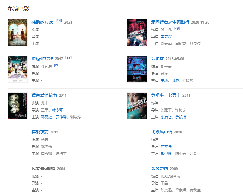 2008年主演電影《愛情萬歲》;同年與鄭融合唱的單曲《一事無成》奪得第31屆十大中文金曲金曲獎、十大勁歌金曲最受歡迎合唱歌曲金獎。