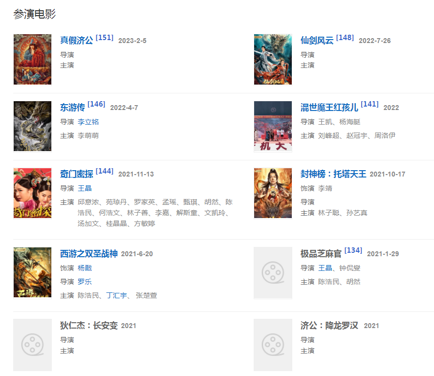 代表作品:西游記貳、封神榜、人龍傳說(shuō)、新濟(jì)公活佛、愛(ài)海滔滔