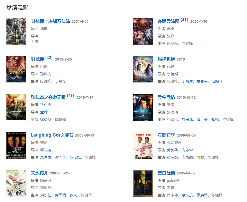 2015年,陳鍵鋒繼續(xù)出演《封神英雄榜2》,隨后獲得亞洲影響力東方盛典亞洲影響力時(shí)尚先生;