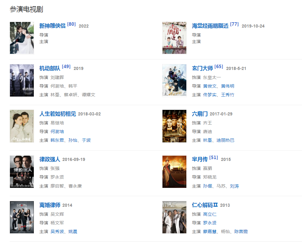 2014年,與吳秀波、姚晨主演內(nèi)地劇《離婚律師》,飾演律師“吳文輝”。