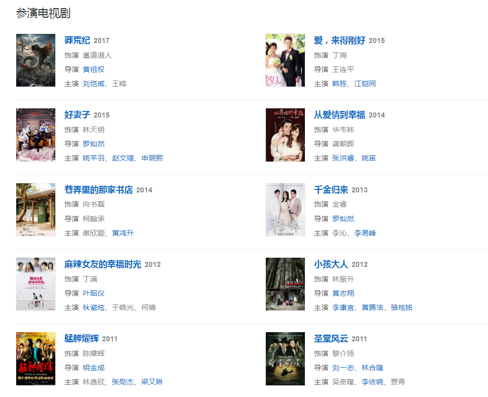 2005年開始向內(nèi)地發(fā)展,同年出演首部臺(tái)灣電影《深海》;