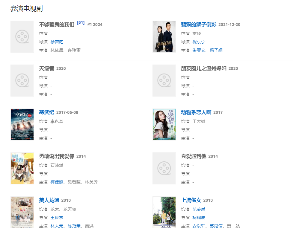 代表作品:惡魔在身邊、換換愛、活該你單身、加油媽媽、愛情合約、幸福最晴天、醉佳導(dǎo)演、斗牛、要不要
