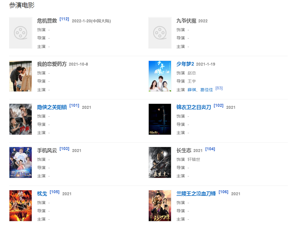 2020年9月28日,參演麥詠麟執(zhí)導(dǎo)的動(dòng)作電影《龍虎斗》;12月16日,參演當(dāng)代涉案劇《黑白禁區(qū)》。