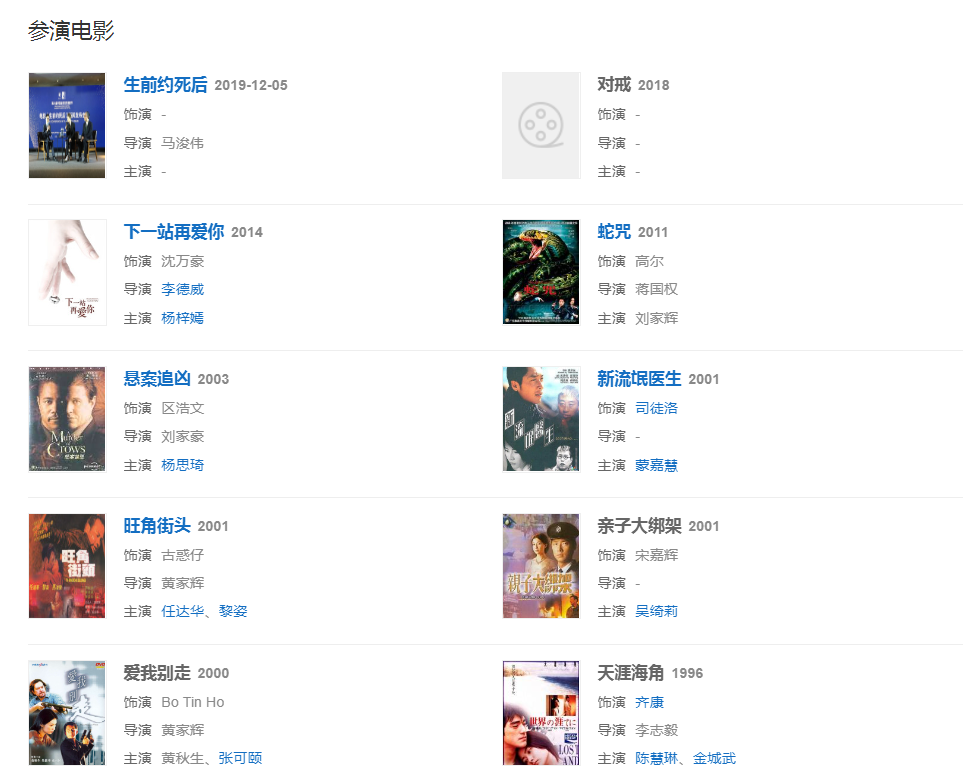 代表作品:鹿鼎記、洛神、突圍行動、隔離七日情、鐵血保鏢、誘情轉(zhuǎn)駁、偶然·徐志摩