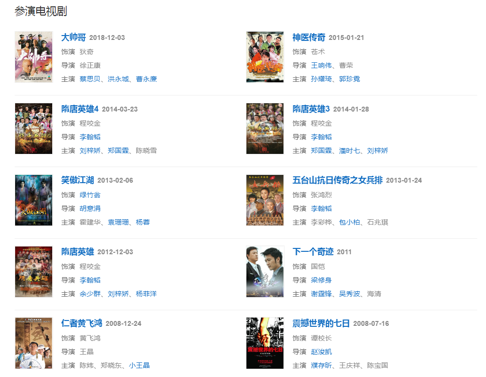2012年,主演古裝歷史傳奇電視劇《隋唐英雄》。