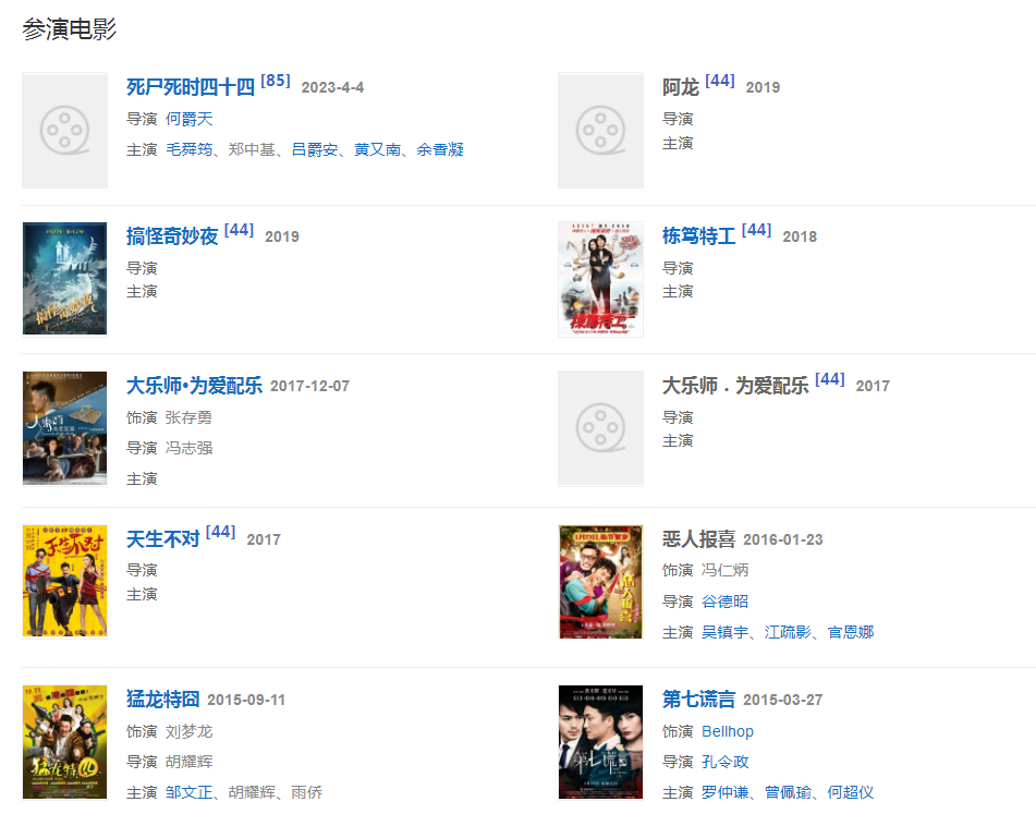 2012年在《四大名捕》飾演“追命”;同年憑借電影《低俗喜劇》獲得第49屆臺灣電影金馬獎最佳男配角獎。