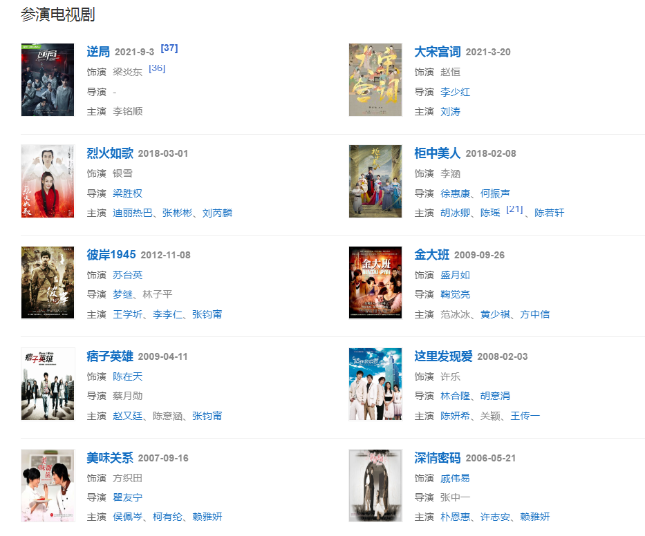 2021年3月20日,與劉濤主演的古裝歷史劇《大宋宮詞》在愛(ài)奇藝、騰訊視頻、優(yōu)酷播出。