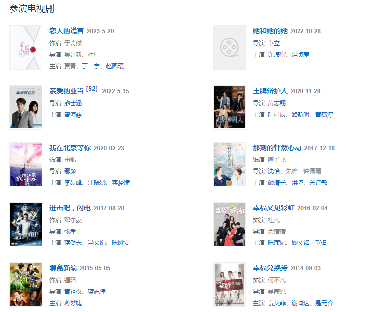 代表作品:終極三國、真愛趁現(xiàn)在、蘭陵王、新神探聯(lián)盟、真愛黑白配、屋頂上的綠寶石